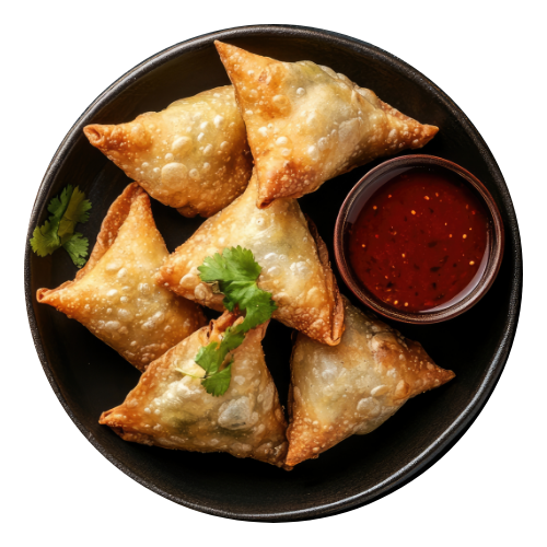 8 vege. Curry Ecken | Frittiert und gekühlt | Mach mich wieder knackig, am besten 3 Min. im Airfryer!